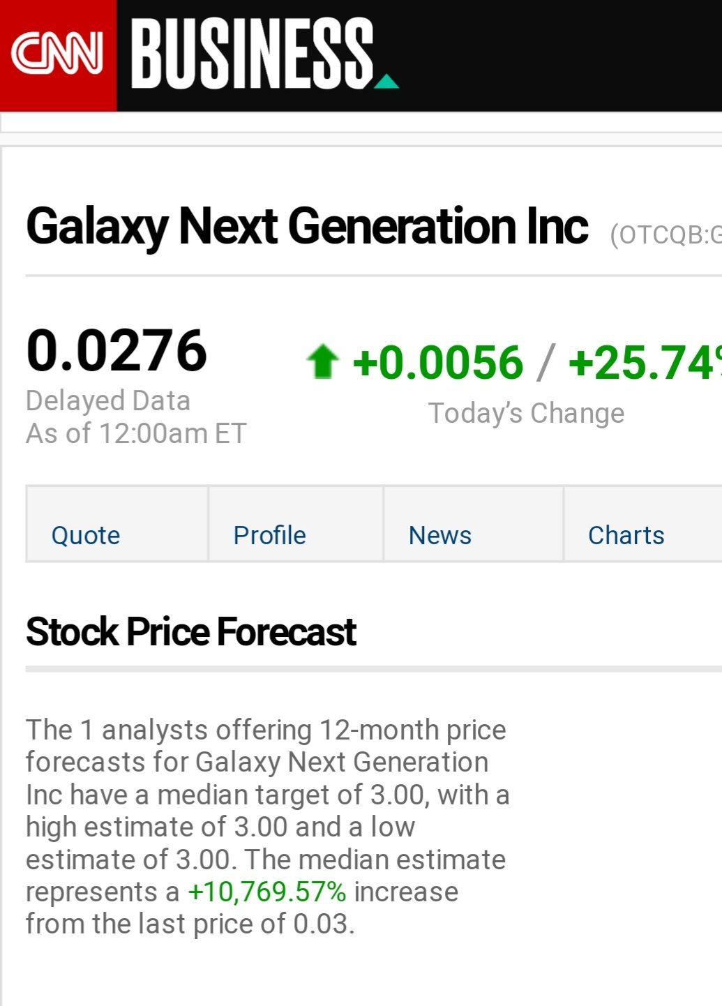 . Our latest prediction for Galaxy Next Generation Incs stock price was made on the Sept. Is Galaxy Next Generation Inc. Stock Price Quote OTCBB.